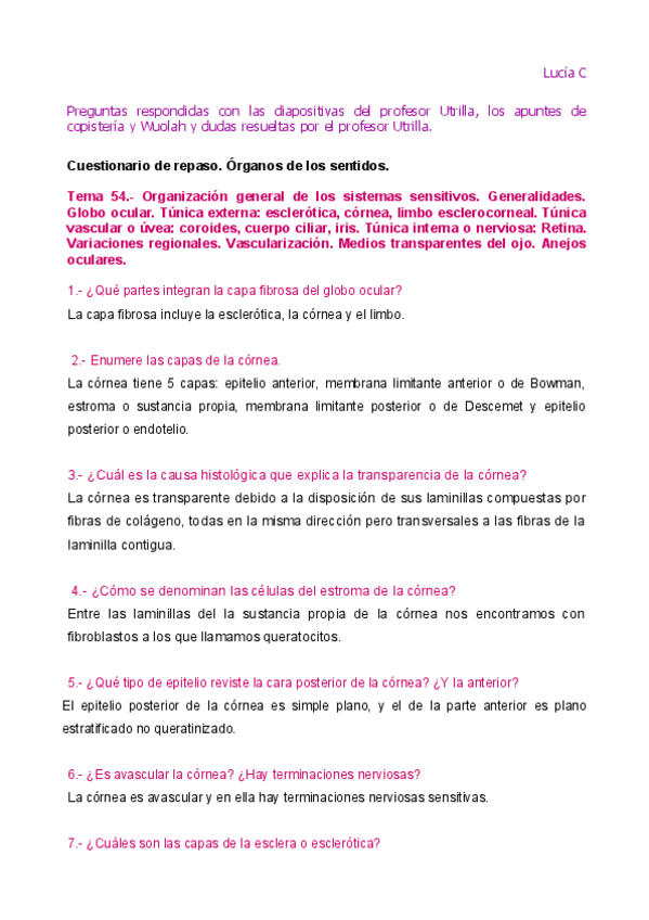 He publicado nuevos apuntes de 1º Histología Humana: Cuestionario de repaso. Órganos de los sentidos. 2018.pdf