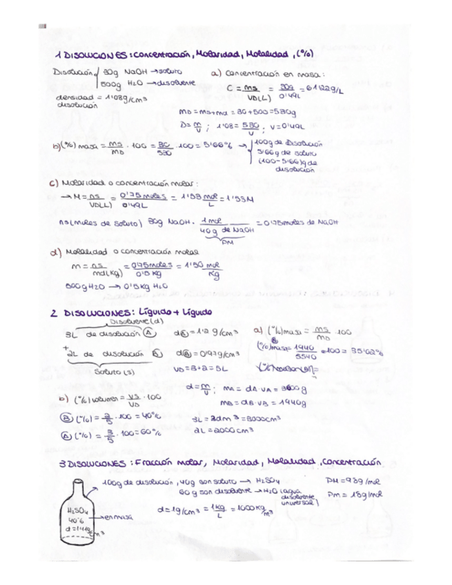 conceptos basicos previos a la asignatura para quien no tenga base. EJERCICIOS DE DISOLUCIONES Y ESTEQUIOMETRIA