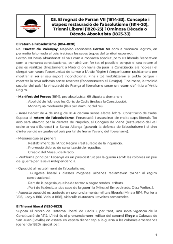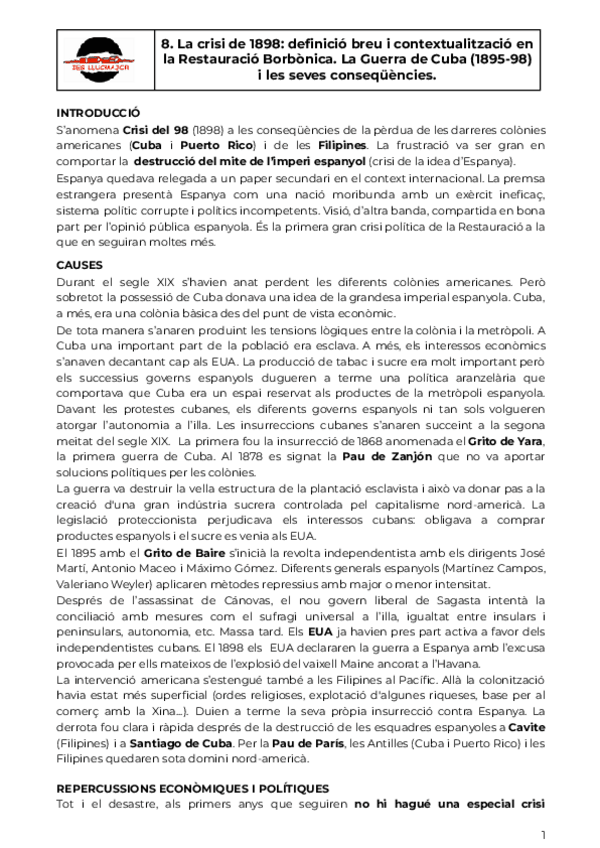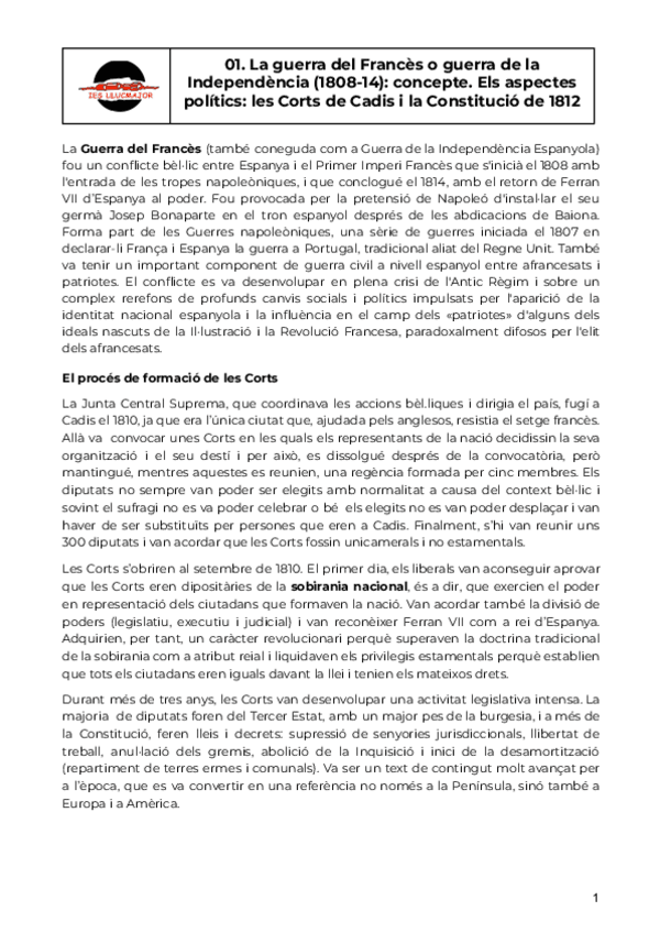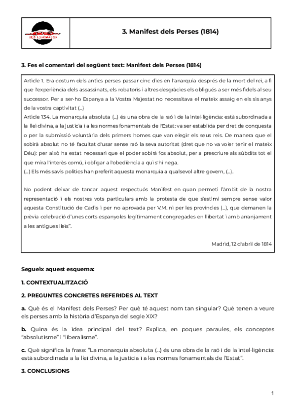 He publicado nuevos apuntes de Historia de España: Comentaris de text