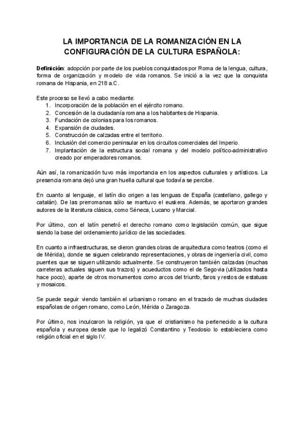 Estándar número 1 de la PAU de Historia de España. Trata la romanización en España y cómo afecta a la actualidad. Muy recomendado: esquemático y perfecto para estudiar.