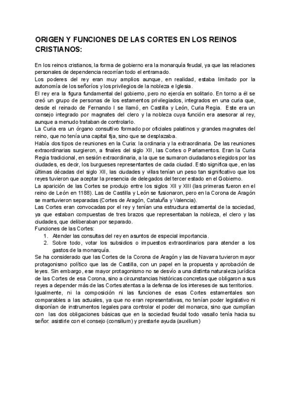Estándar número 4 de la PAU de Historia de España. Trata el origen y funciones de las Cortes en los reinos hispanos.