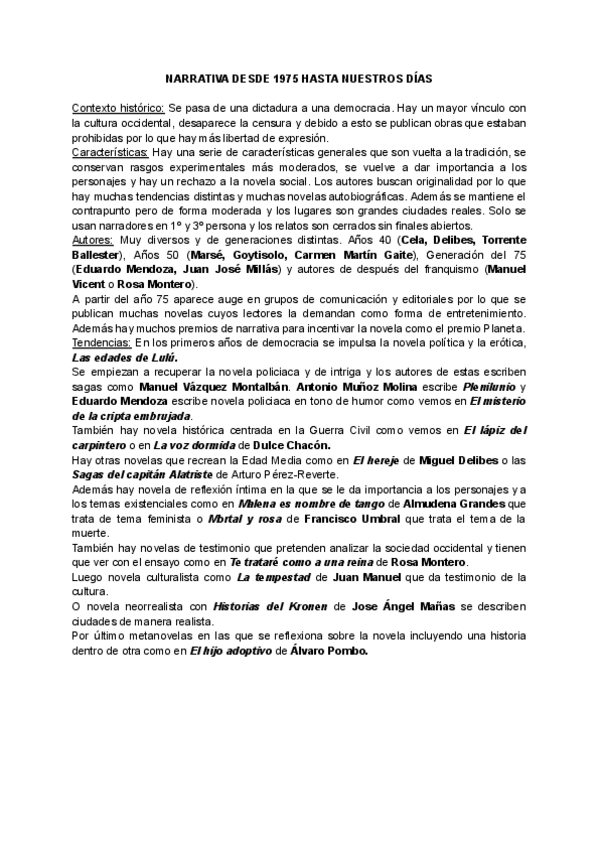 Resumen completo de la narrativa desde 1975 hasta nuestros días