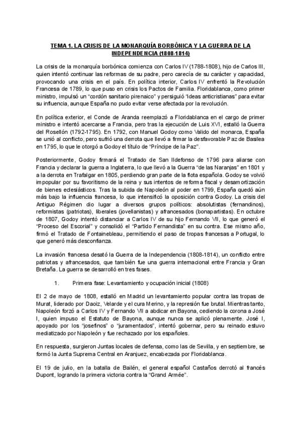 Temas resumidos de Historia de España para 2ºBach y selectividad