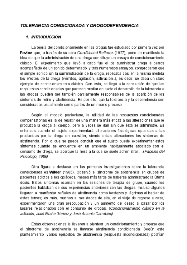 He publicado nuevos trabajos de 1º Fundamentos del Aprendizaje y la Conducta: Tolerancia condicionada y drogod