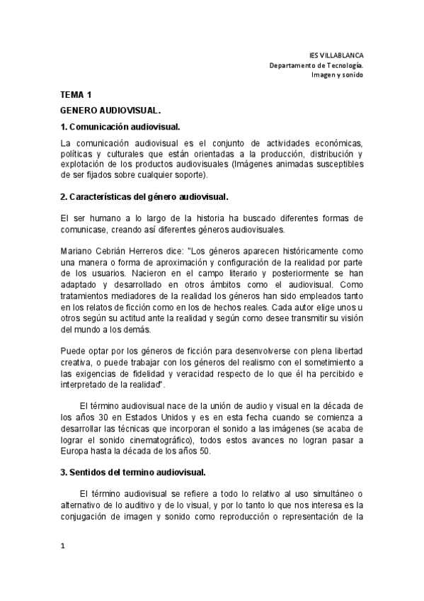 De la asignatura optativa Imagen y Sonido