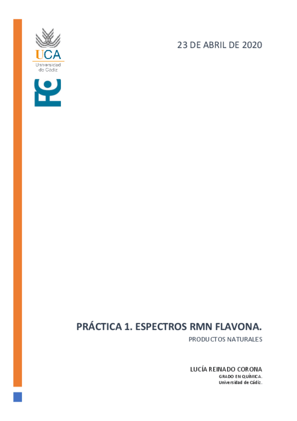 He publicado nuevos ejercicios de 3º Análisis y Determinación Estructural de Productos Naturales: LuciaReinadoCoronaSemChalconaPN.pdf