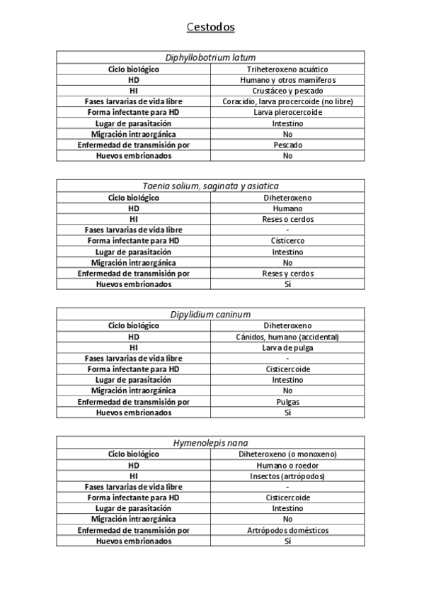 He publicado nuevos otros de 3º Parasitología Alimentaria: Resúmenes cuadros