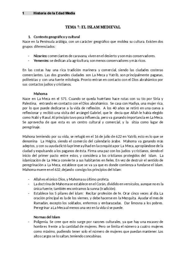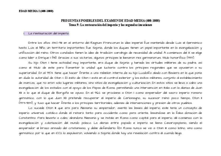 Temario Historia de la Edad Media I (400-1000)