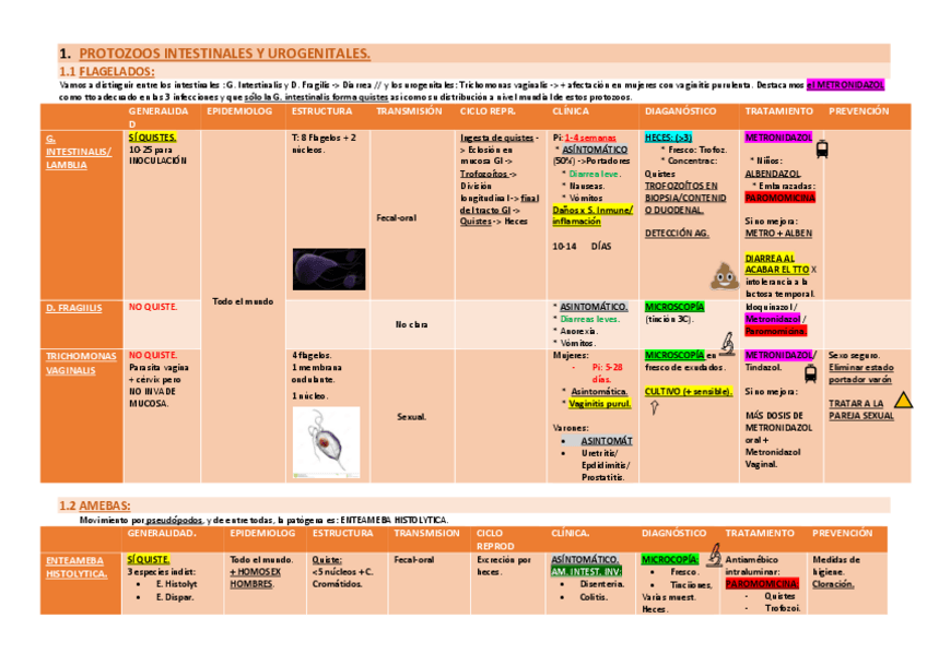 He publicado nuevos apuntes de 3º Microbiología general: 15. TABLAS PROTOZOOS