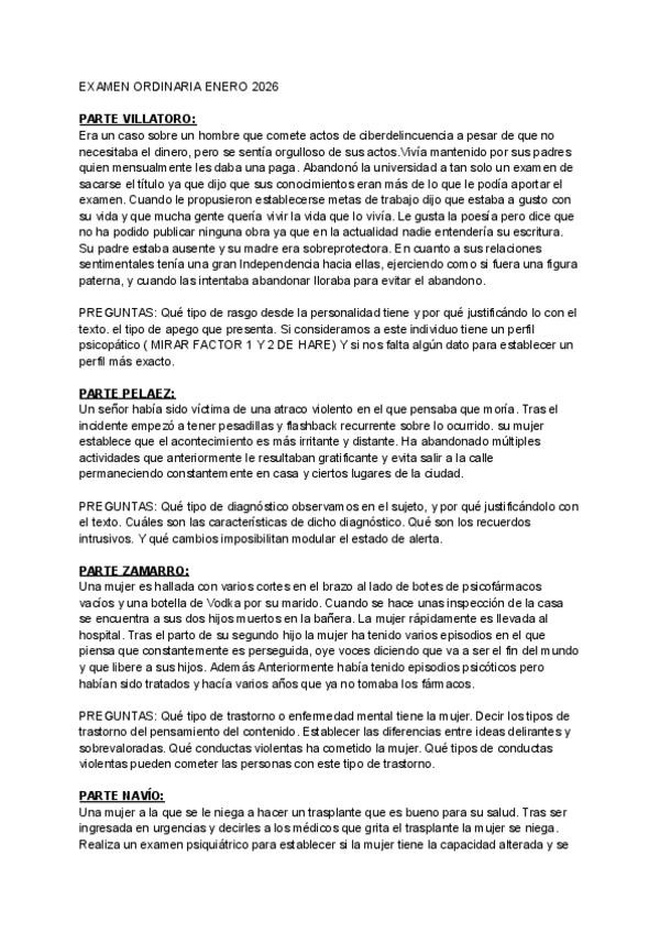 He publicado nuevos examenes de 3º Psiquiatría Criminal y Forense: EXAMEN-ORDINARIA-ENERO-2026.pdf
