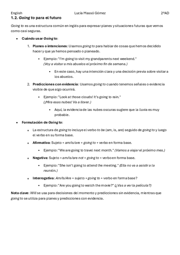 Diferencia entre el WILL y el GOING TO para el futuro. Explicación de la PRIMERA CONDICIONAL