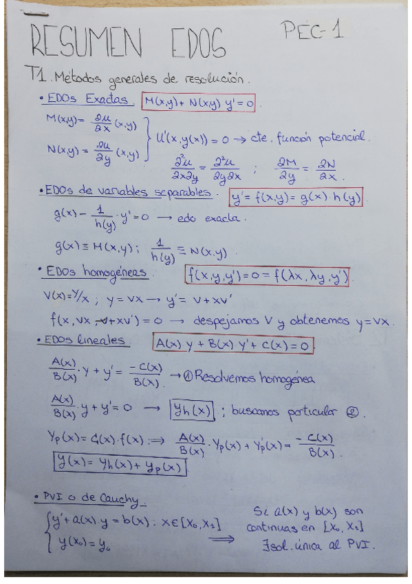 He publicado nuevos apuntes de 2º Ecuaciones Diferenciales: Resumen-edos.pdf