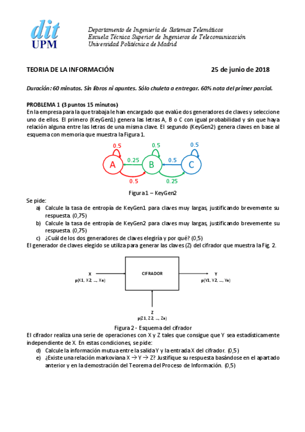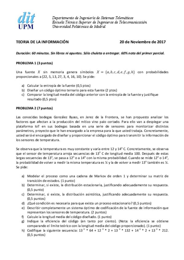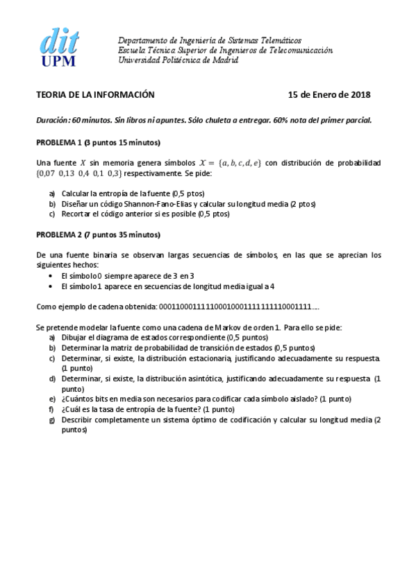 He publicado nuevos examenes de 3º Teoría de la Información: Examenes desde 2017-19