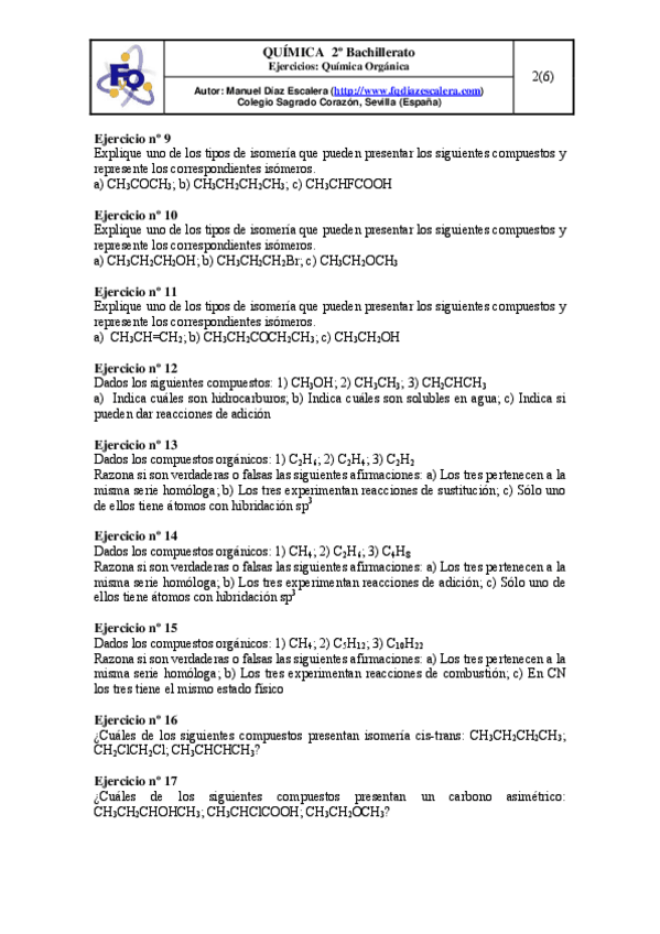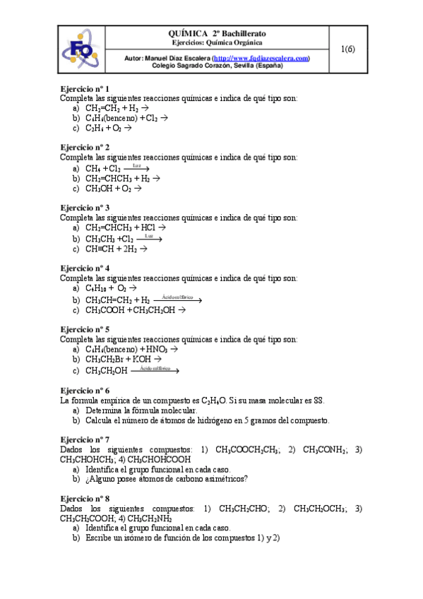 He publicado nuevos ejercicios de 2º Química: Reacciones-quimicas-organica.pdf