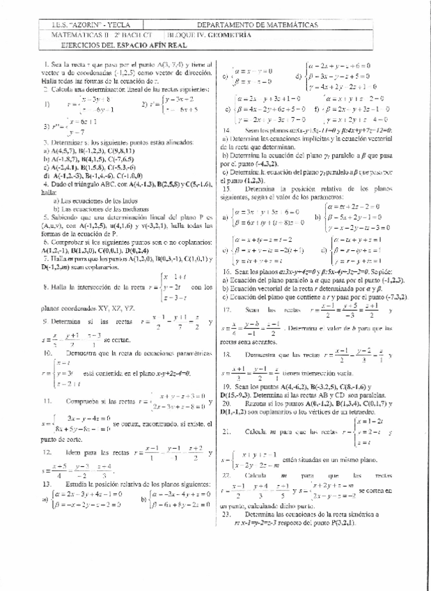 He publicado nuevos ejercicios de 2º Matemáticas II: Ejercicios-ESPACIO-AFIN.pdf