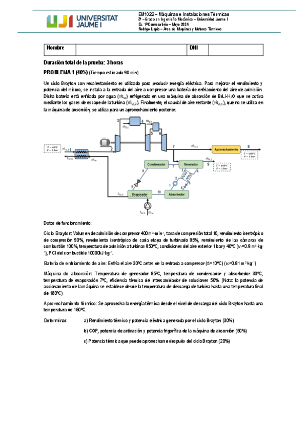 He publicado nuevos examenes de 3º MÁQUINAS E INSTALACIONES TÉRMICAS: Examen1aConvocatoria2324.pdf