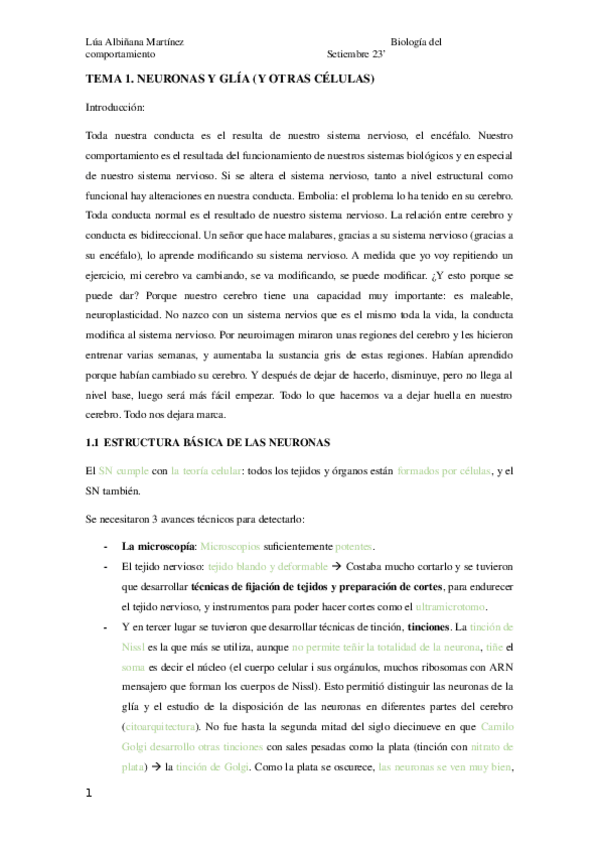 Apuntes biologia del comportamiento Tema 1