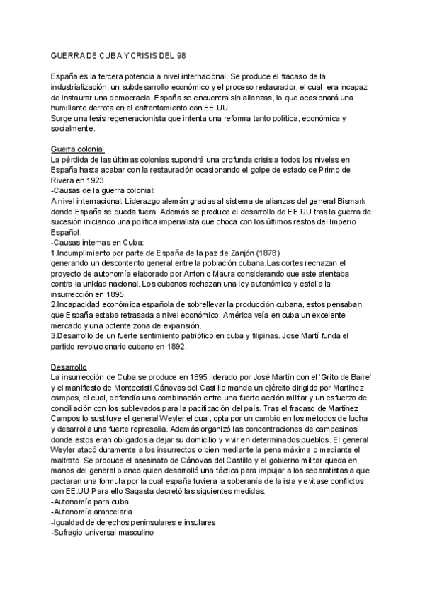 Ya tenéis subido el resumen de la guerra de Cuba y la crisis del 98