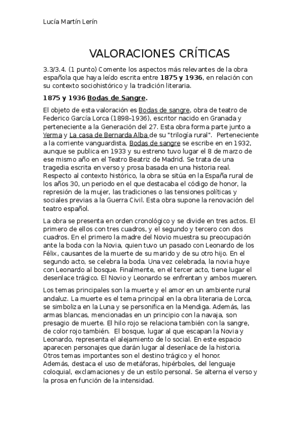 Apuntes de lengua y literatura de segundo de bachillerato y evau ( valoraciones críticas, resúmenes y comentario de texto).