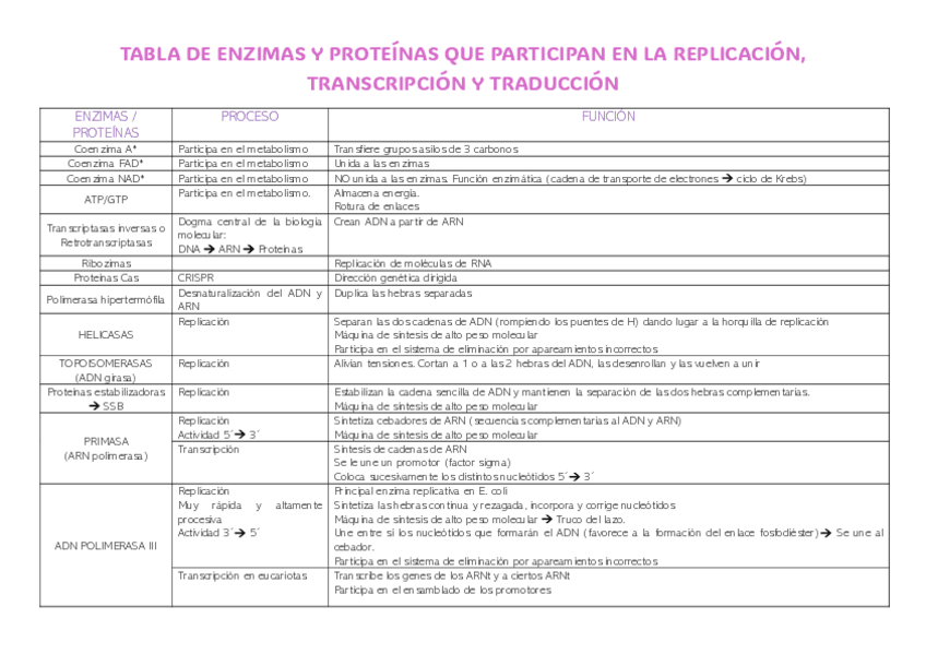 He publicado nuevos apuntes de 1º Bioquímica: TABLA ENZIMAS