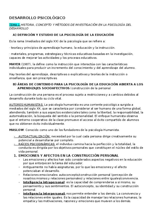 He publicado nuevos apuntes de 1º Desarrollo Psicológico: resumen de todos los temas