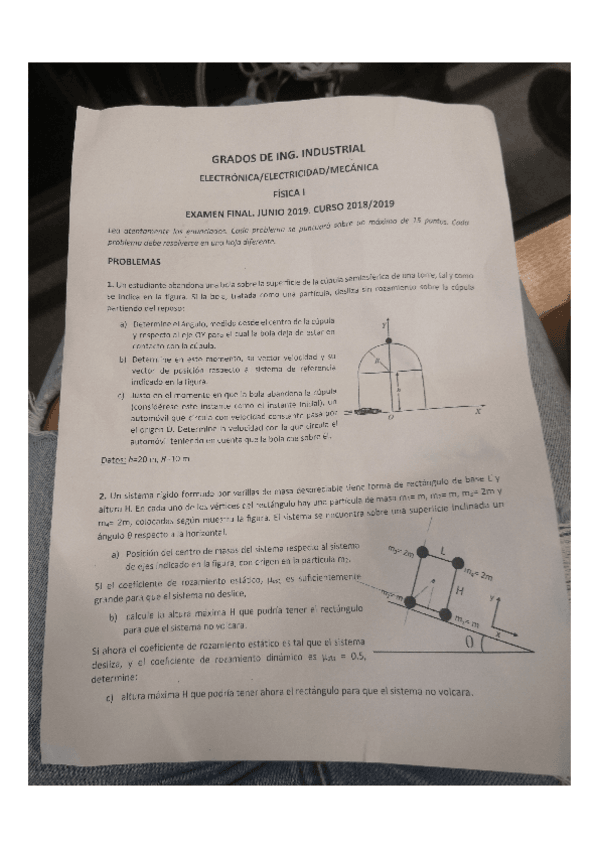 He publicado nuevos examenes de 1º Física I: EXAMEN EXTRAORDINARIO