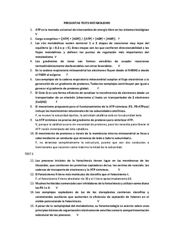 He publicado nuevos apuntes de 2º Bioenergetica y Metabolismo: Preguntas TESTS CLASE metabolismo (explicadas)