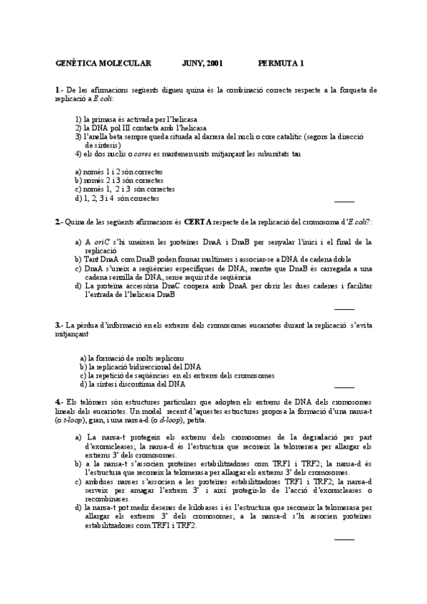He publicado nuevos apuntes de 2º Genética Molecular: Exàmens