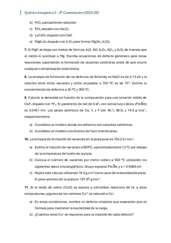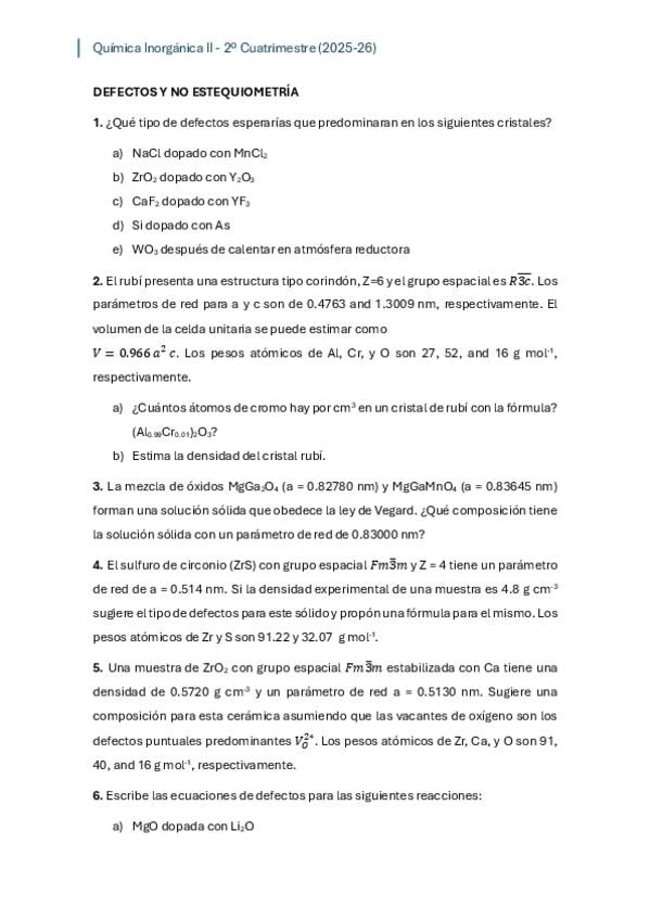 He publicado nuevos ejercicios de 3º Quimica Inorganica II: Boletin-defectos.pdf