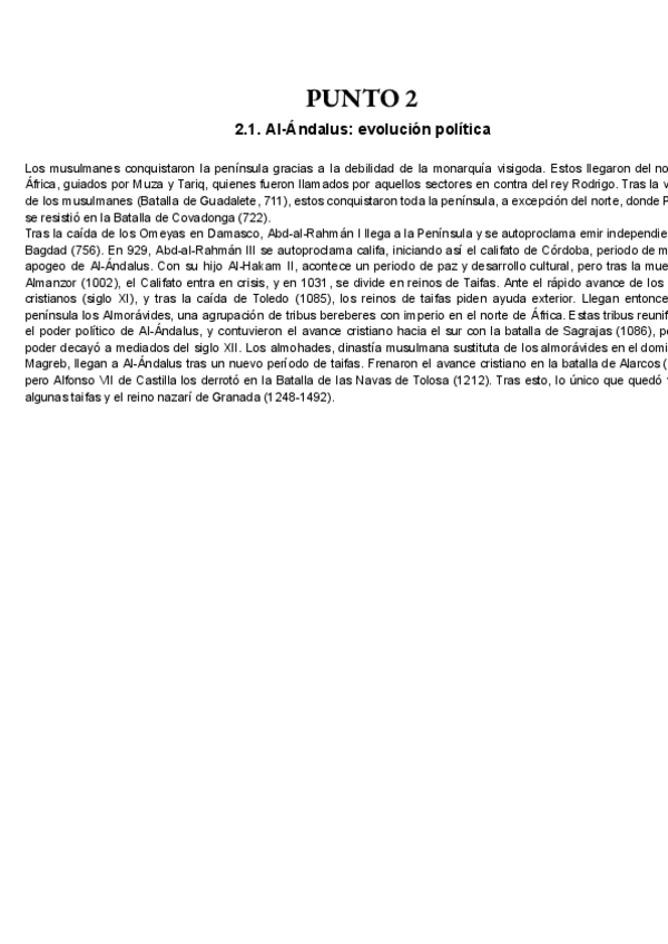 Punto 2, preguntas cortas del temario de Historia de España curso 24-25
