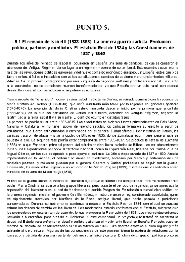 Punto 5, preguntas largas del temario de Historia de España curso 24-25