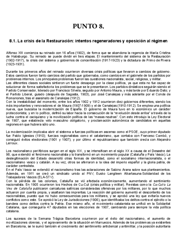 Punto 8, preguntas largas del temario de Historia de España curso 24-25