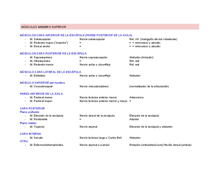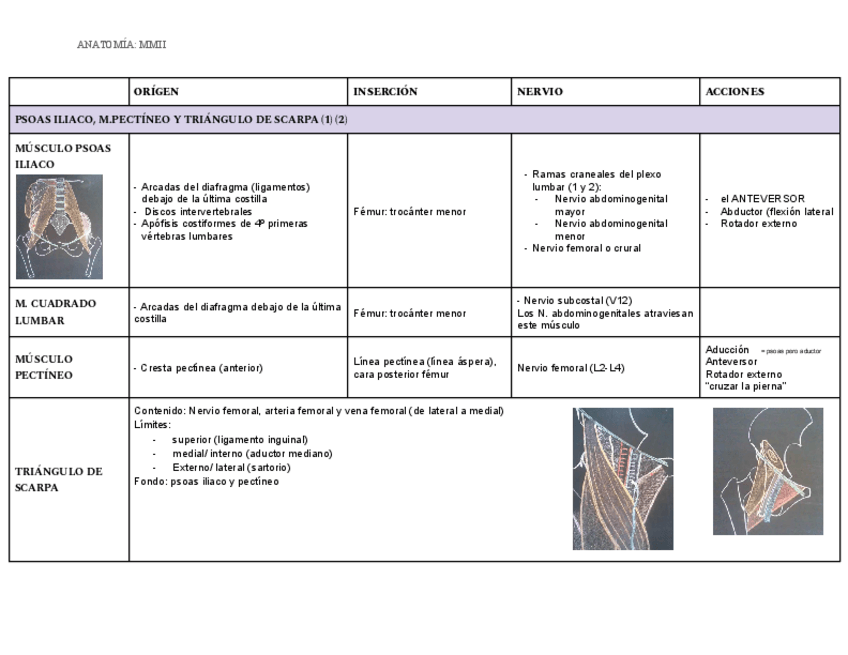 Tabla orígenes, inserciones, inervación y acciones con IMÁGENES.