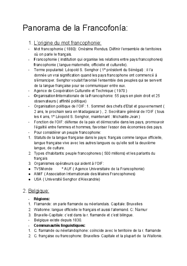Todos los apuntes tomados en clase de PANORAMA DE LA FRANCOFONIA !!