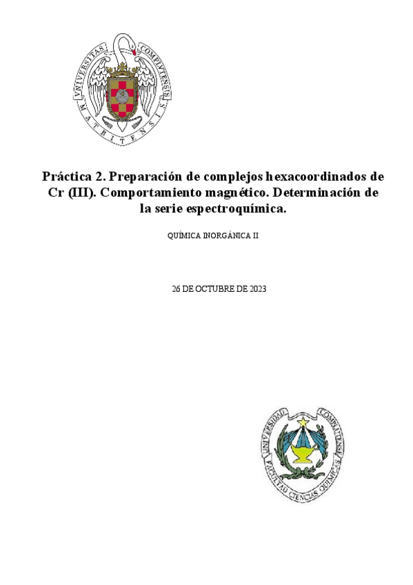 INFORMES. Segundo cuatrimestre Laboratorio Química Inorgánica II