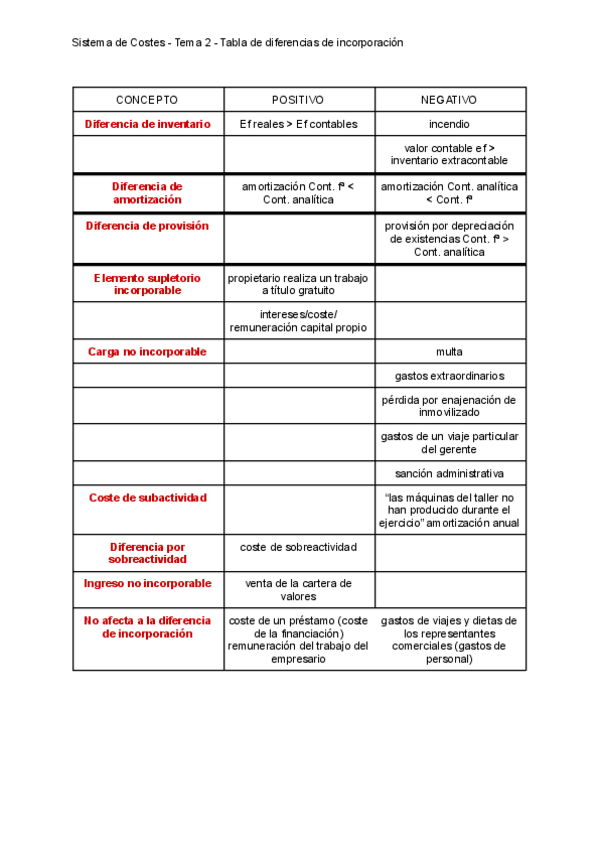 He publicado nuevos apuntes de 2º Sistemas de Costes e Información Económica: Tabla diferencias de incorporación