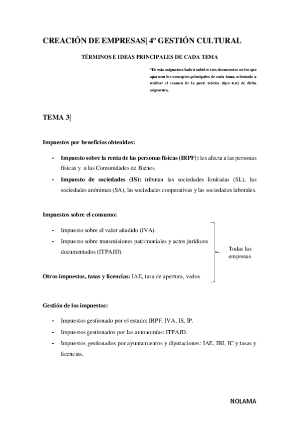He publicado nuevos apuntes de 4º Creación de Empresas: TEMARIO RESUMIDO