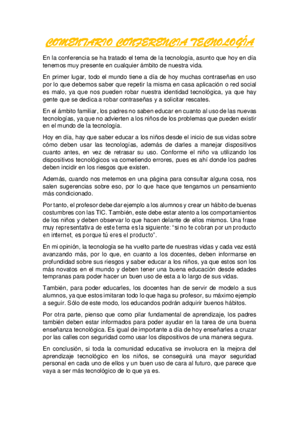 He publicado nuevos apuntes de 1º Teoria e Historia de la Educación: COMENTARIO-CONFERENCIA-TECNOLOGIA.pdf
