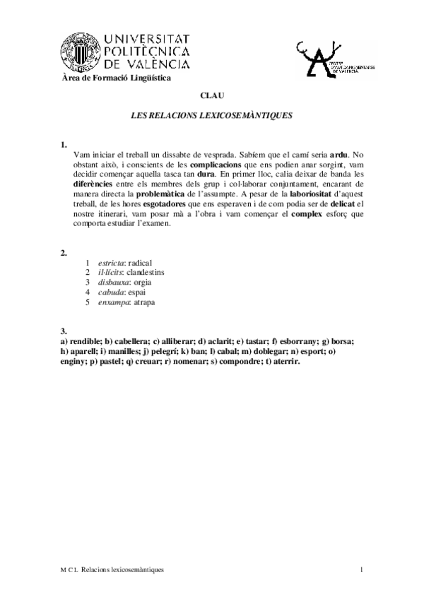 He publicado nuevos apuntes de 1º LENGUA CATALANA I PARA LA EDUCACIÓN PRIMARIA: Relacions-lexicosemantiques-respostes.pdf