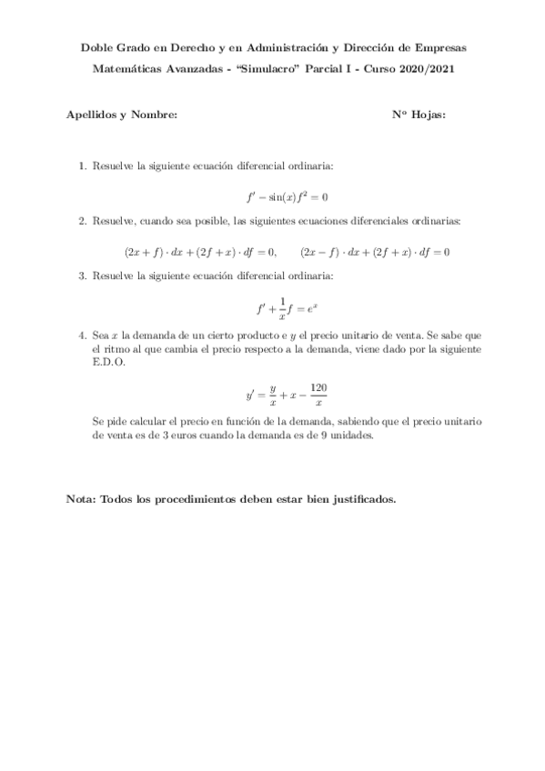 He publicado nuevos examenes de 1º Matemáticas Avanzadas: SimulacroParcialI.pdf