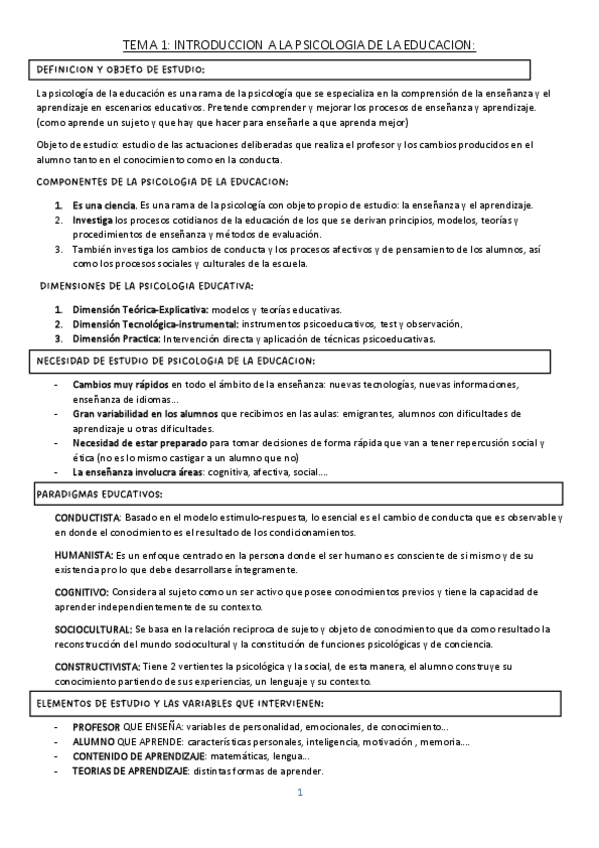 He publicado nuevos apuntes de 1º Psicología de la Educación: Psicología de la educación
