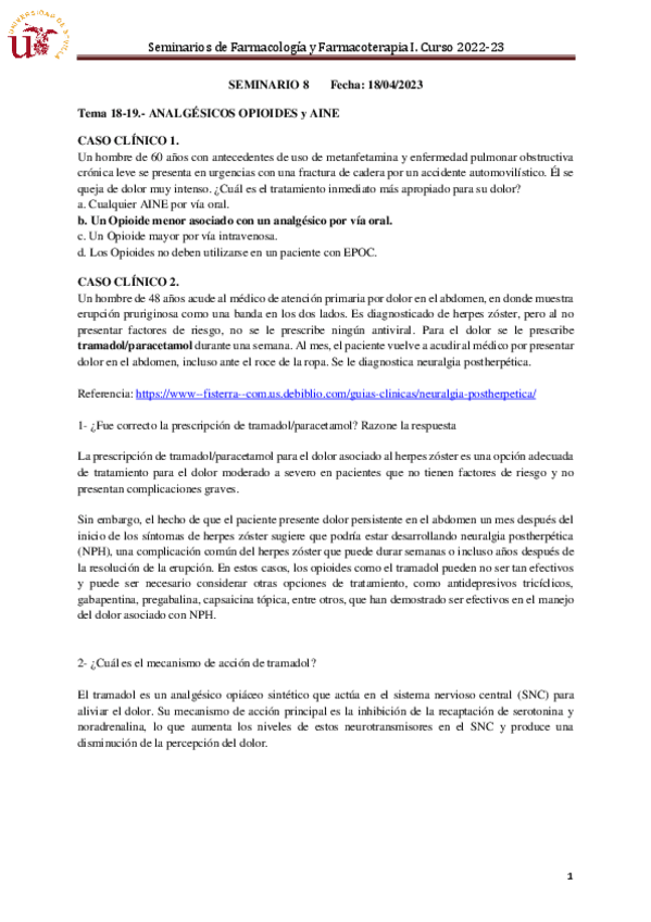 He publicado nuevos apuntes de 3º Farmacología y Farmacoterapia I: Seminario-8-Tema-18-19.-Opioides-AINE RESUELTO.pdf
