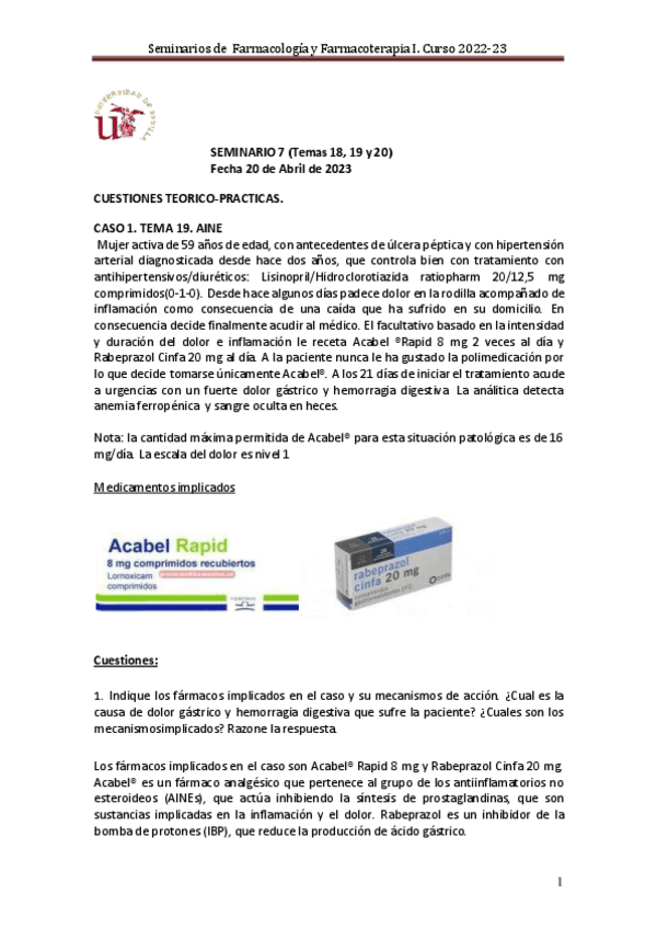 He publicado nuevos apuntes de 3º Farmacología y Farmacoterapia I: Seminario-7-RESUELTO.-Tema-1819-y-20-curso-2022-23.pdf