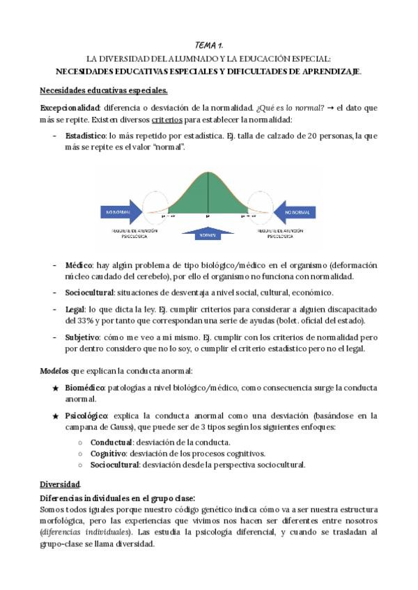 Apuntes resumidos para estudiar de Dificultades de Aprendizaje y Trastornos del Desarrollo, del tema 1 al tema 7.