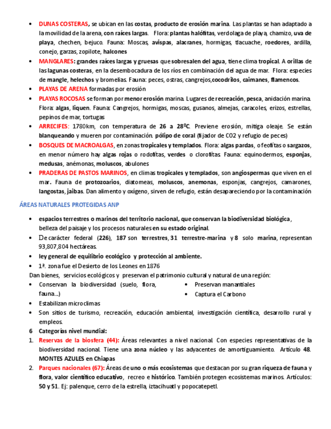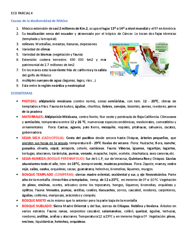 Causas de la biodiversidad de México, ecosistemas, áreas naturales protegidas, flujo de materia y energía y pirámides ecológicas