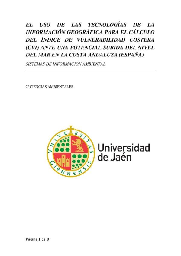 EL USO DE LAS TECNOLOGÍAS DE LA INFORMACIÓN GEOGRÁFICA PARA EL CÁLCULO DEL ÍNDICE DE VULNERABILIDAD COSTERA (CVI) ANTE UNA POTENCIAL SUBIDA DEL NIVEL DEL MAR EN LA COSTA ANDALUZA (ESPAÑA)