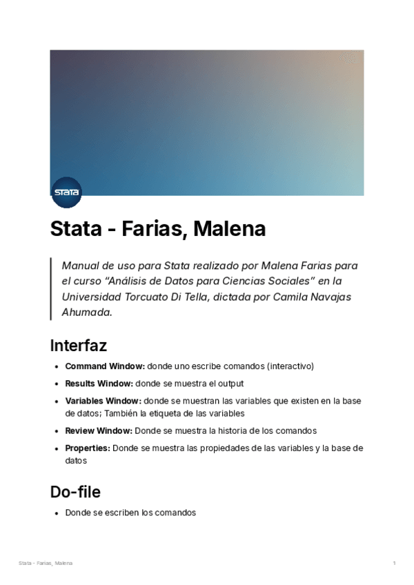 Introducción/manual de Stata. Interfaz, funciones, data management, data wrangling