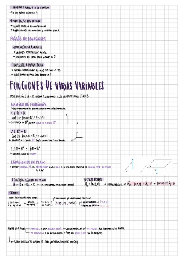 Resumen Teorico que desarrolla los siguientes temas: Planos y Rectas, Funciones de Varias Variables, Límites de Funciones de Varias Variables, Funciones Continuas y Operaciones, Diferenciabilidad y Derivadas parciales, Diferenciabilidad y matrices, Regla