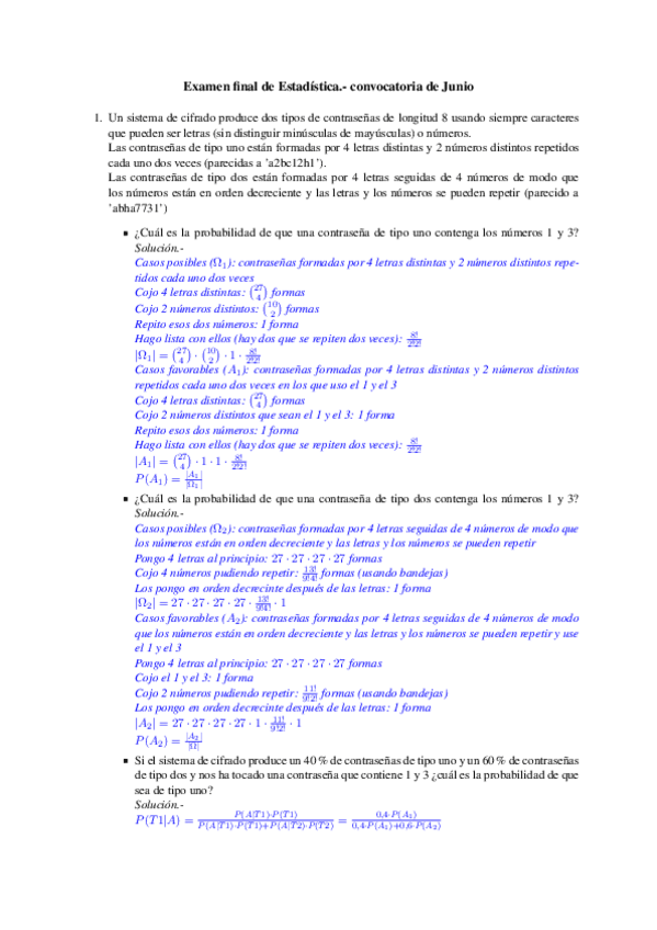 He publicado nuevos examenes de 1º Estadística: Exámenes junio y julio