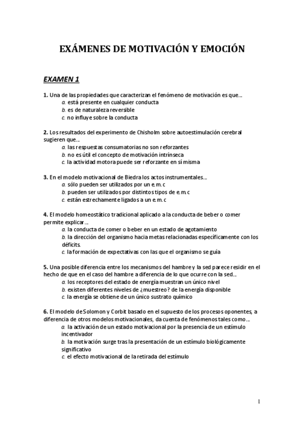 He publicado nuevos examenes de 1º Psicología de la Motivación y de la Emoción: Examen.pdf